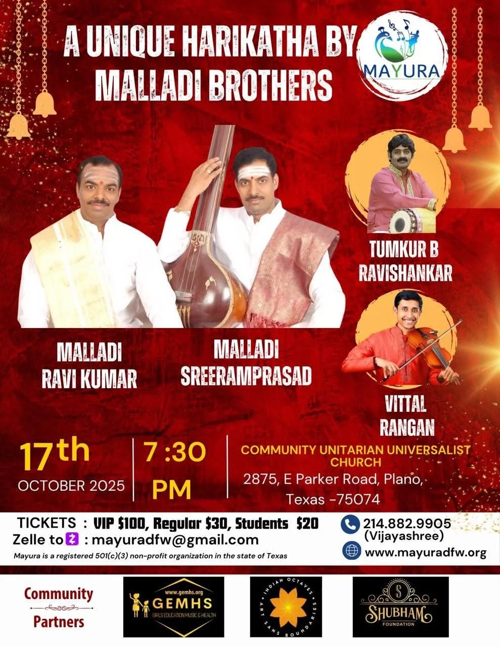 Back to All Events Malladi Brothers - A Unique Harikatha Friday, October 17, 2025 7:30 PM 9:30 PM Google Calendar ICS